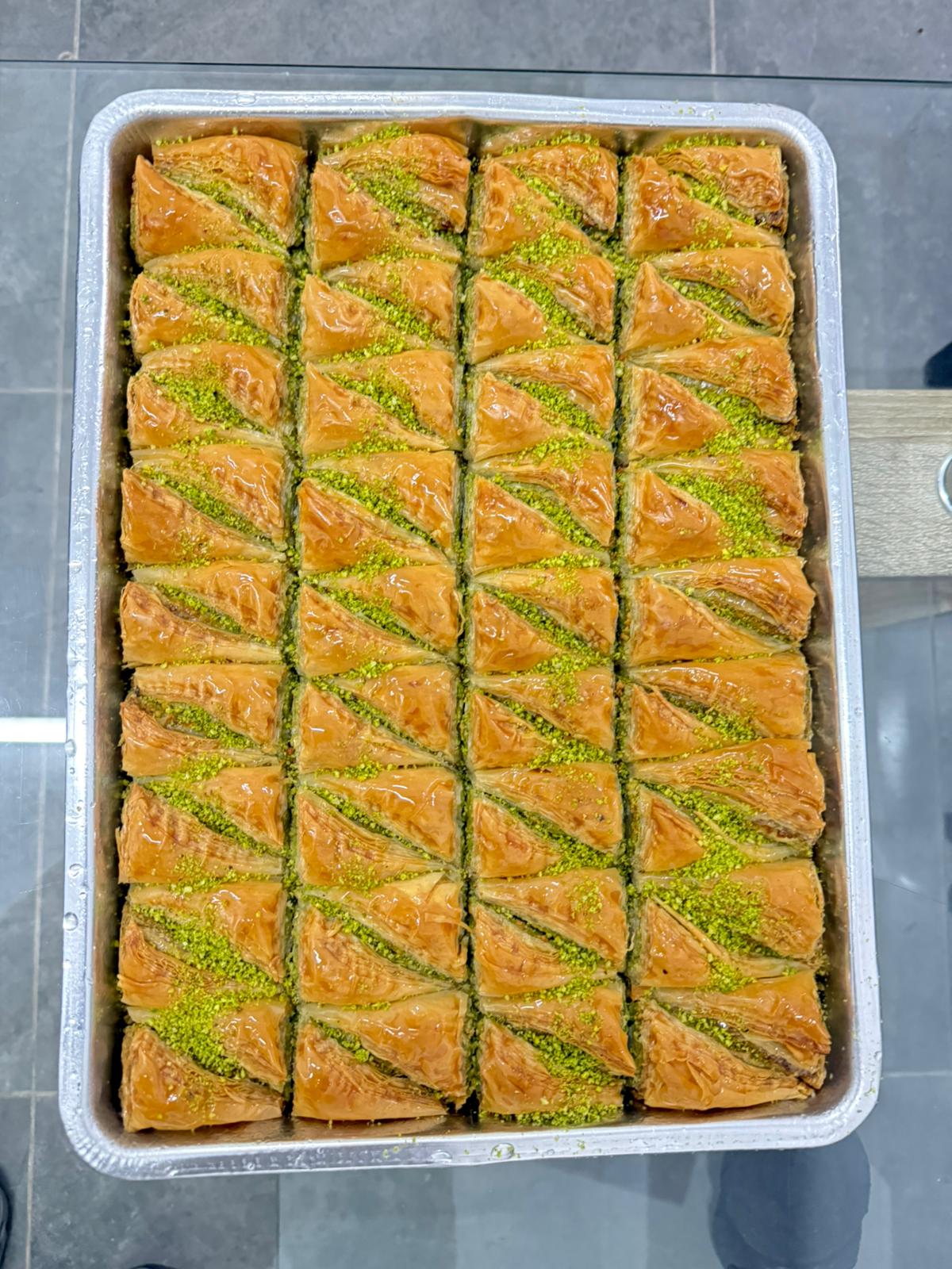 Indulge in our authentic, handcrafted baklava - a traditional Middle Eastern delicacy that combines layers of delicate, flaky phyllo pastry with premium nuts and sweet honey syrup. Each piece is carefully prepared using time-honored techniques to deliver the perfect balance of crispy texture and rich, sweet flavor.